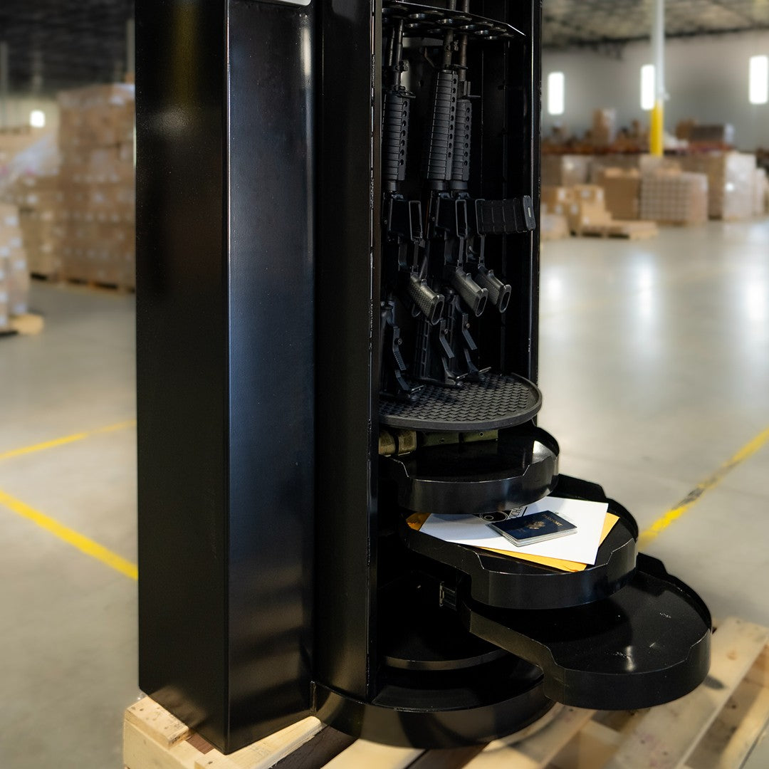 After 100+ years of safe design, where the locking mechanism has been traditionally located behind the door, the QVR has re-engineered weapon security with the highest quality biometric keypad and locking mechanism now located in the base. The QVR offers fast access and first rate security.